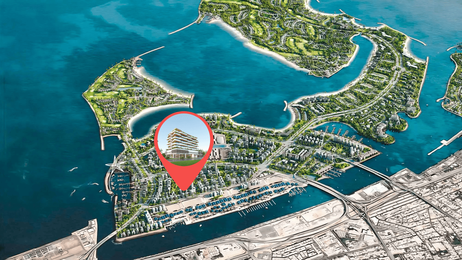 A szigetek jól kiépített infrastruktúrával kapcsolódnak a szárazföldhöz, biztosítva a zökkenőmentes hozzáférést a város többi részéhez. Ez a kiváló elhelyezkedés lehetővé teszi a lakók és látogatók számára, hogy élvezzék a szigeti élet nyugalmát, miközben csak egy rövid autóútra vannak Dubai nyüzsgő városi központjaitól, beleértve az ikonikus látnivalókat és vibráló negyedeket, mint például a Downtown Dubai, a Dubai Marina és a Palm Jumeirah. A fejlesztés számos prémium kényelmi szolgáltatást kínál, beleértve a luxus szállodákat, ínycsiklandó étkezési lehetőségeket, prémium kiskereskedelmi üzleteket és világszínvonalú szabadidős létesítményeket.
