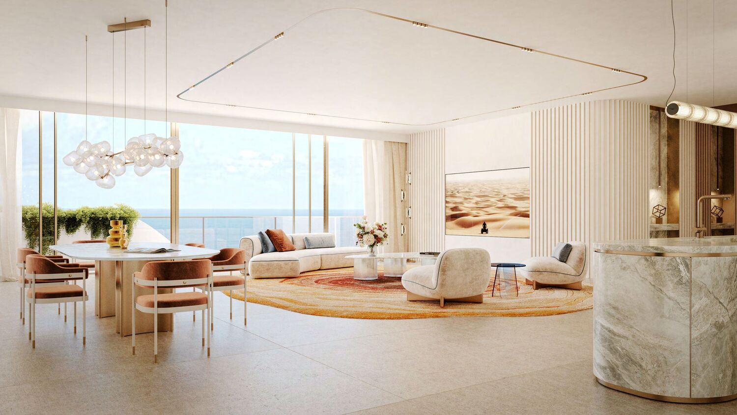 Each residence within The Mural is a statement of elegance and intentional design. The interiors are bathed in natural light, featuring high ceilings, soothing palettes, and luxurious finishes that evoke a sense of warmth and sophistication. Living areas are curated for both comfort and refined style, while the kitchens and bathrooms are fitted with top-tier materials and contemporary fixtures, offering a seamless blend of functionality and beauty. It’s a space where every detail has been crafted to inspire well-being and elevated living.